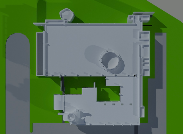 Inspiration from Crespi D'adda's idea of paternal hierarchy and gridded layout. Use of geometric complexity to express hierarchal importance.